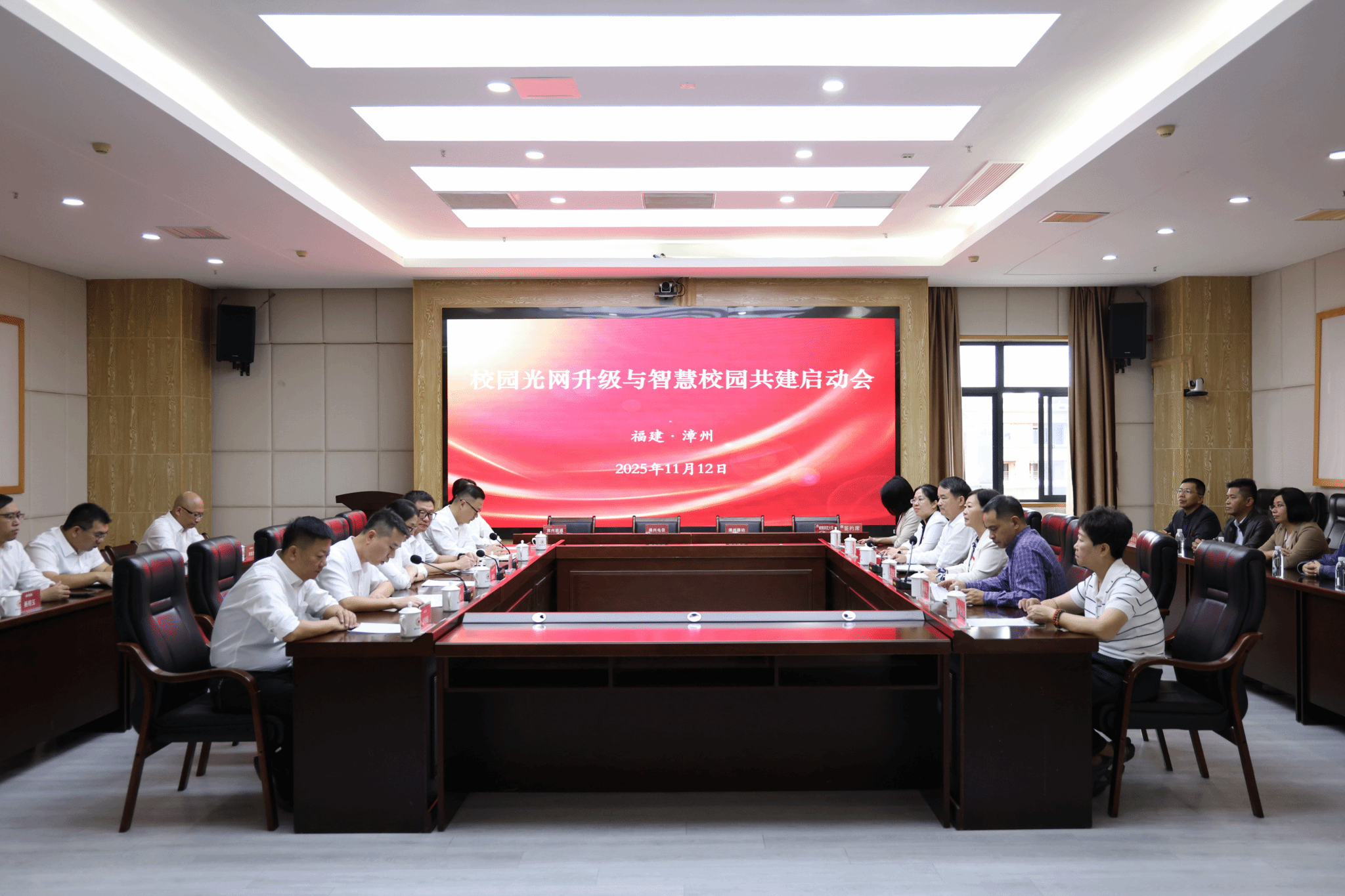 11月12日,我校在科技信息楼1607会议室召开校园光网升级与智慧校园共建启动会。漳州移动公司副总经理蔡丽敏、漳州电信副总经理甘忠现、漳州联通副总经理黄荣贵,校党委副书记、校长张龙海,党委常委、副校长张宏怡出席,会议由张宏怡主持。
